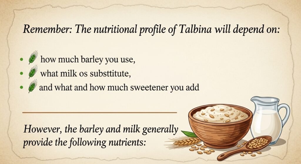 इन अतिरिक्त चीज़ों का मकसद स्वाद बढ़ाना होता है। असली तलबीना का बेस हमेशा जौ + तरल (दूध/पानी) + हल्की मिठास ही रहेगा।